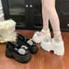 Bow rhinestone one-word buckle Mary Jane shoes women's fashion platform casual height increase single shoes women's shoes