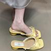 Yellow cool slippers are worn outside the summer new mid-heel square head with skirt cool slippers.