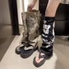 Alphabet graffiti canvas trousers pleated stacking boots niche design boots women's new cool boots