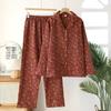 Yarn-dyed Floral Cotton Lapel Cardigan Long Sleeve Retro Home Clothes Set