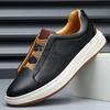 Casual foot cover first layer cowhide board shoes men's free shoelaces business leisure one pedal