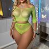 Sex Underwear Retro Medium Green Sexy Hollow Mesh Short Sleeve Bikini Set