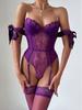 Ellolace Purple Erotic Lingerie Complete Sexy Outfits Sissy G-String Thongs Lace Sex Costume Stockings Fantasy Adult Babydoll