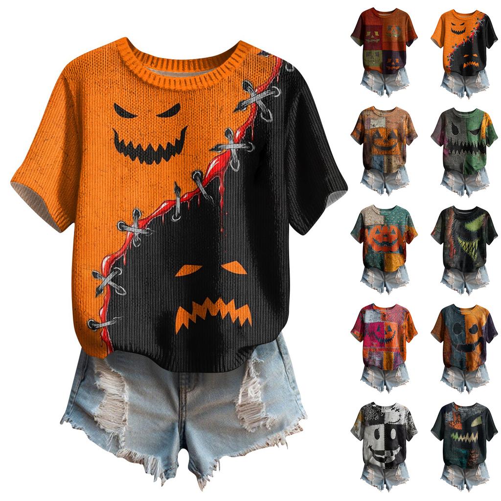Women's Cute Sweater Knitted Fashion Casual Round-neck Short-sleeved Cozy Print Top