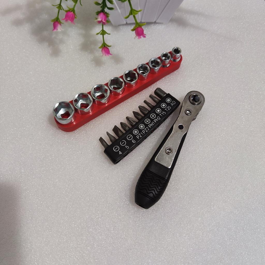 Kompaktní a pohodlná ráčna – ideální pro každou domácnost! Koupil jsem tuto sadu ráčnových klíčů pro drobné opravy v domácnosti a musím říct, že mě příjemně překvapila! Především se jedná o malou a kompaktní sadu, což ji činí ideální pro práci ve stísněných a složitých místech, která nejsou snadno přístupná běžnými šroubováky.. Zvláště se mi líbil *design s pravým úhlem*, který velmi usnadňuje práci uvnitř skříní nebo stísněných zařízení. Rukojeť působí kvalitně a pohodlně se drží a přechod mezi nástrčnými klíči je jednoduchý a rychlý. K dispozici je široká škála nástrčných klíčů, takže je snadné přizpůsobit nástroj téměř jakémukoli typu šroubu.. Další plus je, že nejsou potřeba baterie – je to zcela manuální, což zvyšuje spolehlivost a jednoduchost použití. Používám ho jak doma, tak na výletech pro drobné opravy na kole a autě.. Závěrem: Velmi doporučeno! Vynikající, užitečná sada a skvělý dárek pro lidi, kteří mají rádi pohodlné pracovní nástroje.