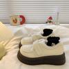 White thick-soled velvet small leather shoes for women's 2025 winter new retro British style Japanese jk warm loafers