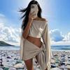 Summer Casual Sleeveless Off Shoulder Tie Front Crop Top and Shorts Two Piece Set Cover Tummy