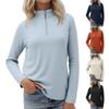 Women's Casual Fashion Solid Color Long Sleeve Zipper Neck Top T-shirt