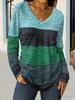 Women's Color Blocked Casual Fashion Long Sleeved V-neck T-shirt Top