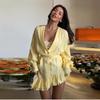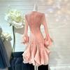 French style Gentle Sophisticated Style Dress Niche Design Breasted Flower Bud Skirt Long sleeve Frill More Buckle Short dress Women