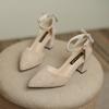 Fashion Women Pumps Chunky High Heels Shoes Summer Pointed Toe Suede Sandals Luxury Party Dresses Sexy Women Shoes Female Office Shoes