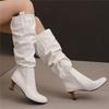 Fashion Trendy Women Pleated Blue Denim Jeans Boots Spike Heels Pointy Toe Knee-high Boots Shoes Autumn Winter Red Black White Pink