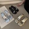 Fashion Rhinestone Flower Women's Slippers Summer New Luxury Fashion Elegant Square Toe Thin High Heels Sandals Women's Shoes Zapatos