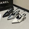 Fashion Pointed Toe High Heels Spring and Summer 2025 New French Outside Wear Belt Buckle Wrapped Toe Sandals Back Empty Half Drag