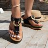 Fashion 2025 Women's large-sized flip-toe wedge sandals, summer thick-heeled metal buckle slippers, beach cool slippers