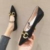 Fashion Spring New Flat Shoes Women's Pointed Head Shallow Mouth Suede Metal Buckle Soft Sole Anti-slip Wear-resistant Single Shoes
