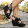 Fashion Black Patent Leather Wedges Sandals Women Peep Toe Chunky Platform Sandals Woman 2025 Summer Thick Bottom Beach Sandalias Mujer