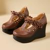 Fashion GKTINOO 2025 Spring Ethnic Style Women Genuine Leather Shoes Flower Wedges Heels Shoes Thick Sole Casual Ladies Platform Shoes