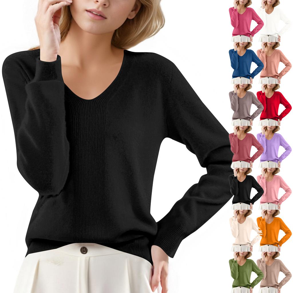 Pullover Sweaters For Women V Neck Soft Lightweight Loungewear Breathable Loose Fit Long Sleeve Travel Sweater Tops