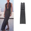Summer Women's Clothing Vacation Style Backless Halter Collar Linen Blend Buckle Decoration Midi Skirt Dress 8351041