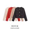 Kaslead New Women clothes Western Style Three Buckles round Neck Knitted Long sleeve Sweater Outerwear Cardigan
