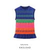 Kaslead New Women clothes Western Style Laminated Decoration Stripe Sleeveless Knitted Top 2142099 330