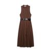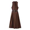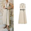 Spring and Summer New Women's Clothing Single-Breasted Pleated Decoration with Belt V Neck Sleeveless Midi Skirt Dress 5029101