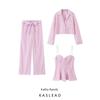 Kaslead New Arrival Women's Clothing Fashion Style Stripes Bubble Cotton Loose Casual Shirt Pants Suit