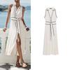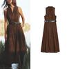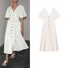 Summer New Product Women's Clothes French Contrast Color Trim Double Breasted V Neck with Belt Midi Skirt Dress 3655939