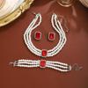 Hepburn Retro Faux Pearl & Gemstone Jewelry Set: Multi-Layer Choker, Bracelet, & Stud Earrings for Women