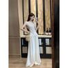Kumikumi New Chinese Style Suit Lace Lace Inverness Women's Autumn Cut Out Stand Collar Cheongsam Dress Two-piece Set