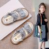 Girls sandals 2025 summer new little girl fashion bag head sequined princess shoes medium and older children go out beach shoes