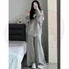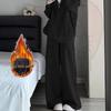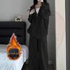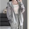 Dámská šedá mikina s kapucí a široké kalhoty - Ležérní podzimní/zimní dvoudílný set s kardiganovou bundou - Trend