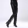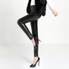Knee hole lace rivet pu imitation leather leggings personalized slim-fitting high-waisted nine-point pants