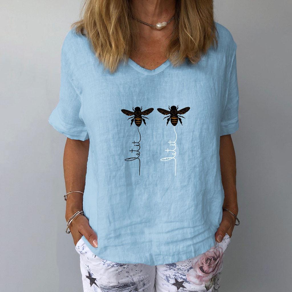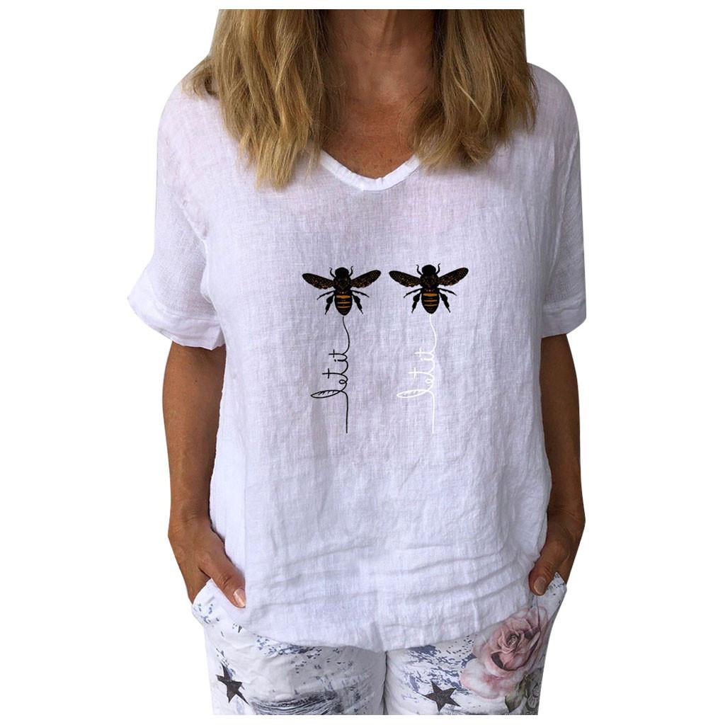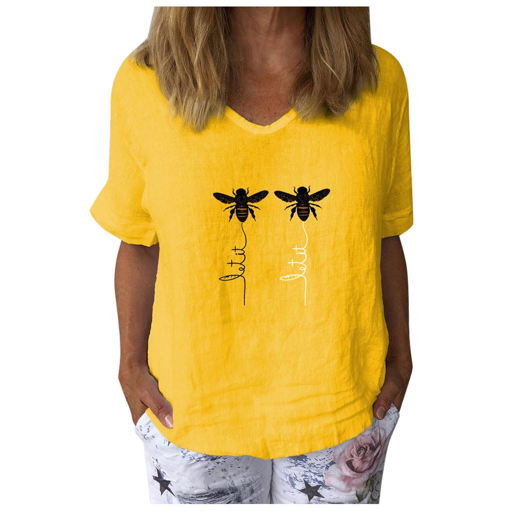 Womens Short Sleeve Honeybee Printed V-Neck Tops T-Shirt Loose Casual Blouse