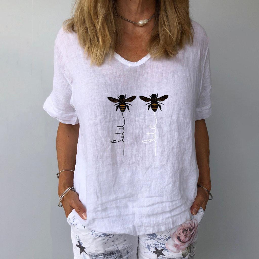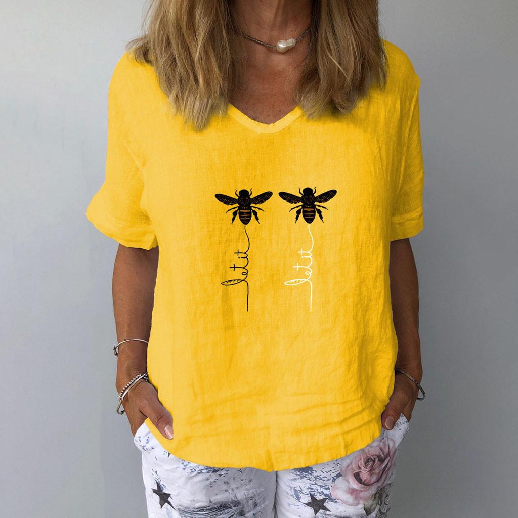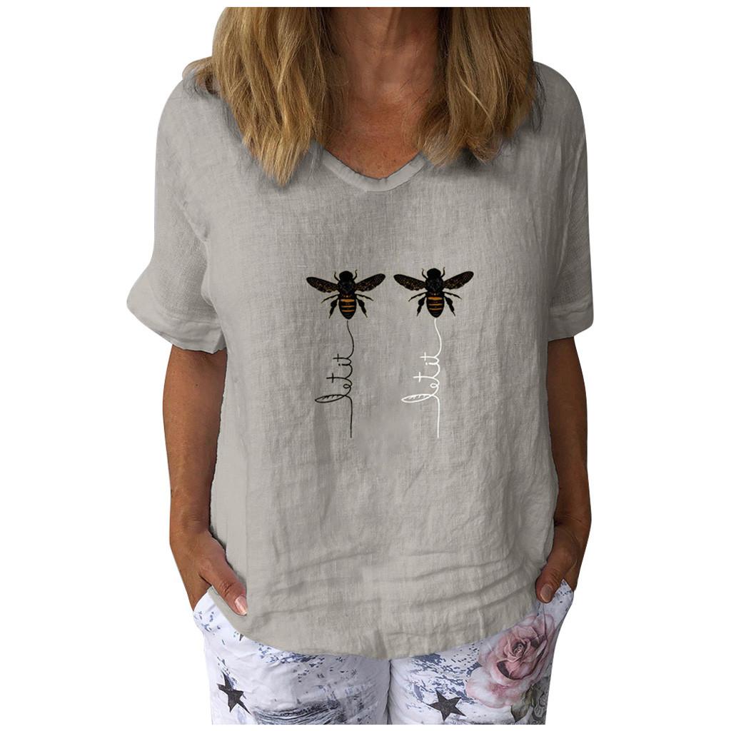 Womens Short Sleeve Honeybee Printed V-Neck Tops T-Shirt Loose Casual Blouse