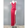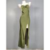 Export Single High Chain Halter Slit Hemline Style Satin Hip-Wrapped Figure-Flattering Annual Party Party Dress Dress