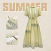 French style Vintage dress Summer New Foreign Trade Women clothes Small Stand Collar Heavy Industry Embroidery Beads Chiffon Dress 30760