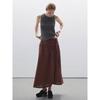 MD Women clothes French style Vacation Wave Style Retro Brown Texture Linen Umbrella Skirt Women's Skirt 05236586717