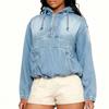 Ripped Jeans Outerwear Autumn New Foreign Trade Women clothes Hooded Collar Zip-up Pullover Long sleeve Leisure Top 32252