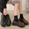 Cowhide version all-inclusive thick-soled inner height-increasing women's shoes, new autumn one-pedal lazy two-wear single shoes