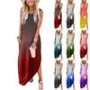 Women Casual Loose Solid Color Pocket Long Dress Sleeveless Split Maxi Dresses