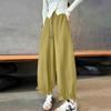 summer autumn elastic waist loose casual ruffles ankle length pants women solid color all-match trousers
