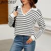 BITCED Oversized Long Cardigan Sweater for Women Autumn/Winter Lazy Style Striped Colour-Block Knit Cardigan