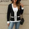 BITCED Autumn/Winter Women's Striped Knitted Cardigan with Buttons
