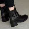 Womens Ankle Boots Fashion Belt Buckle Soft Leather Boots Plush Warm Winter Boots for Women Heel Casual Leather Boot Botas Mujer