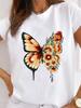 (Asian Size) Tee Top Women Fashion Female Clothing T Shirt Woman Print butterfly floral trend 90s Short Sleeve Graphic T-shirts
