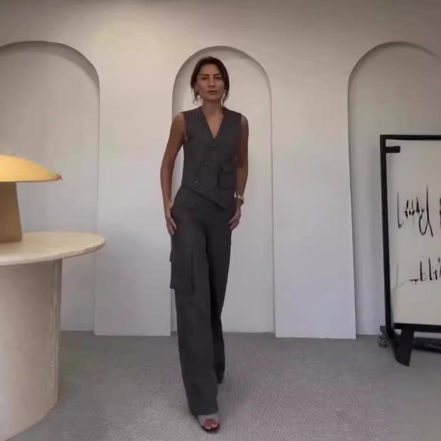Elevate your wardrobe with this stylish double-breasted vest and long pants suit for women. Crafted entirely from high-quality polyester, this ensemble offers both comfort and durability. The chic striped design lends a contemporary touch, while the sportive style ensures versatility, making it perfect for both casual and semi-formal occasions. Whether you're heading to the office or out for a weekend brunch, this suit is designed to keep you looking effortlessly sophisticated.