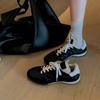 Cowhide version~ Rhombus Xiaoxiangfeng tire cowhide lace-up casual sports shoes women's trendy leather platform running shoes board shoes