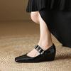 Patent Leather Pointed Wedges Mary Janes Shoes Shallow Buckle Strap Silver/black Women Pumps 2025 Summer New Casual Sandals